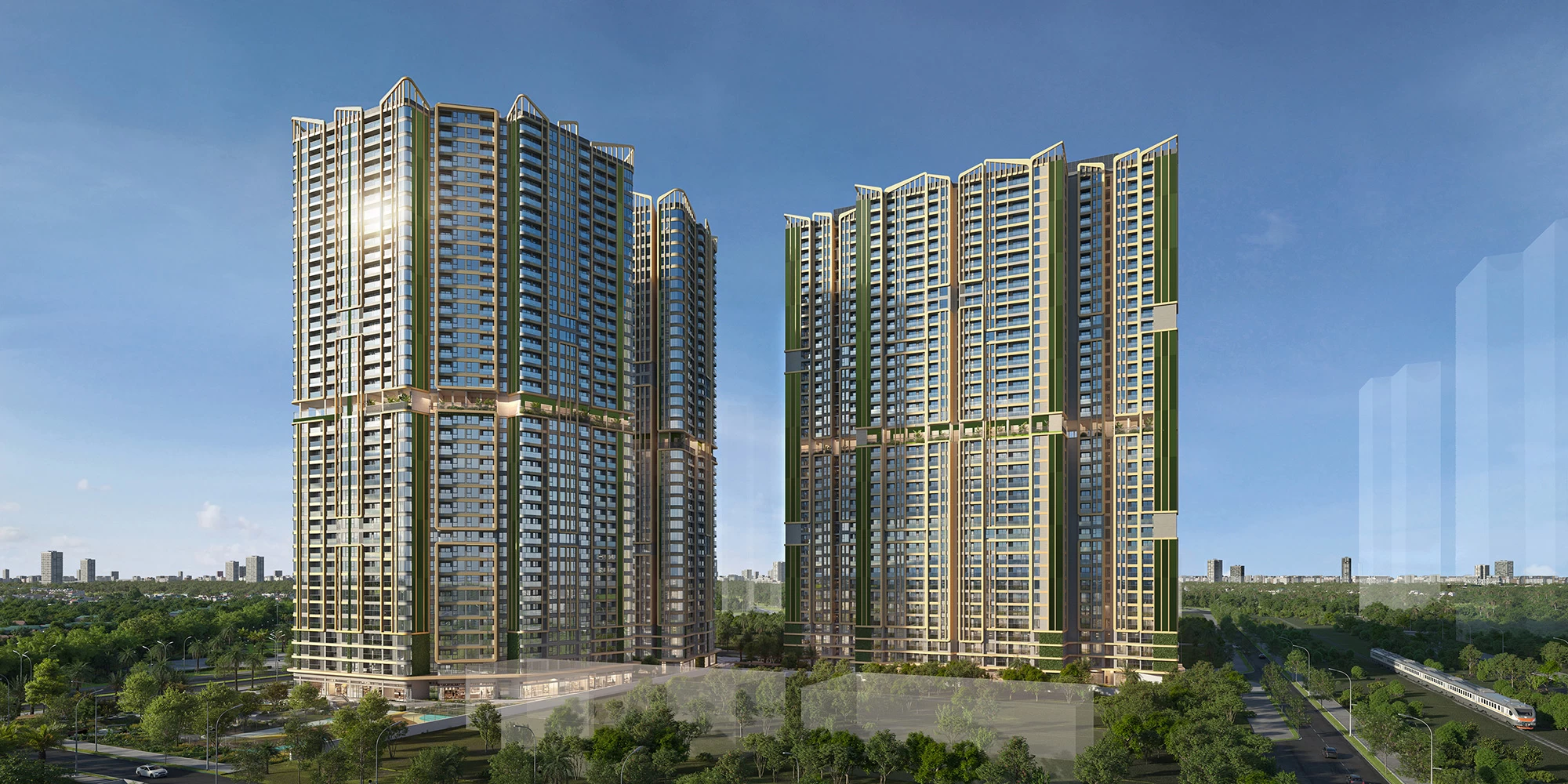 Quy mô phát triển: 3 tòa căn hộ The Aqua, The Atmos, The Aura