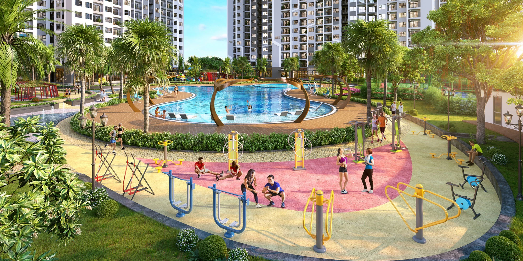 Sức hút của The Miami đến từ không gian cảnh quan đậm chất nhiệt đới Mỹ. Nằm ngay giữa 5 tòa căn hộ The Miami là khu bể bơi ngoài trời mang phong cách “resort”, bao quanh là hàng loạt sân thể thao tennis, bóng rổ, cầu lông, bóng chuyền, gym ngoài trời, sân chơi trẻ nhỏ, sân tập dưỡng sinh, vườn nướng BBQ… đan xen bên những khu vườn cây nhiệt đới rộng lớn.